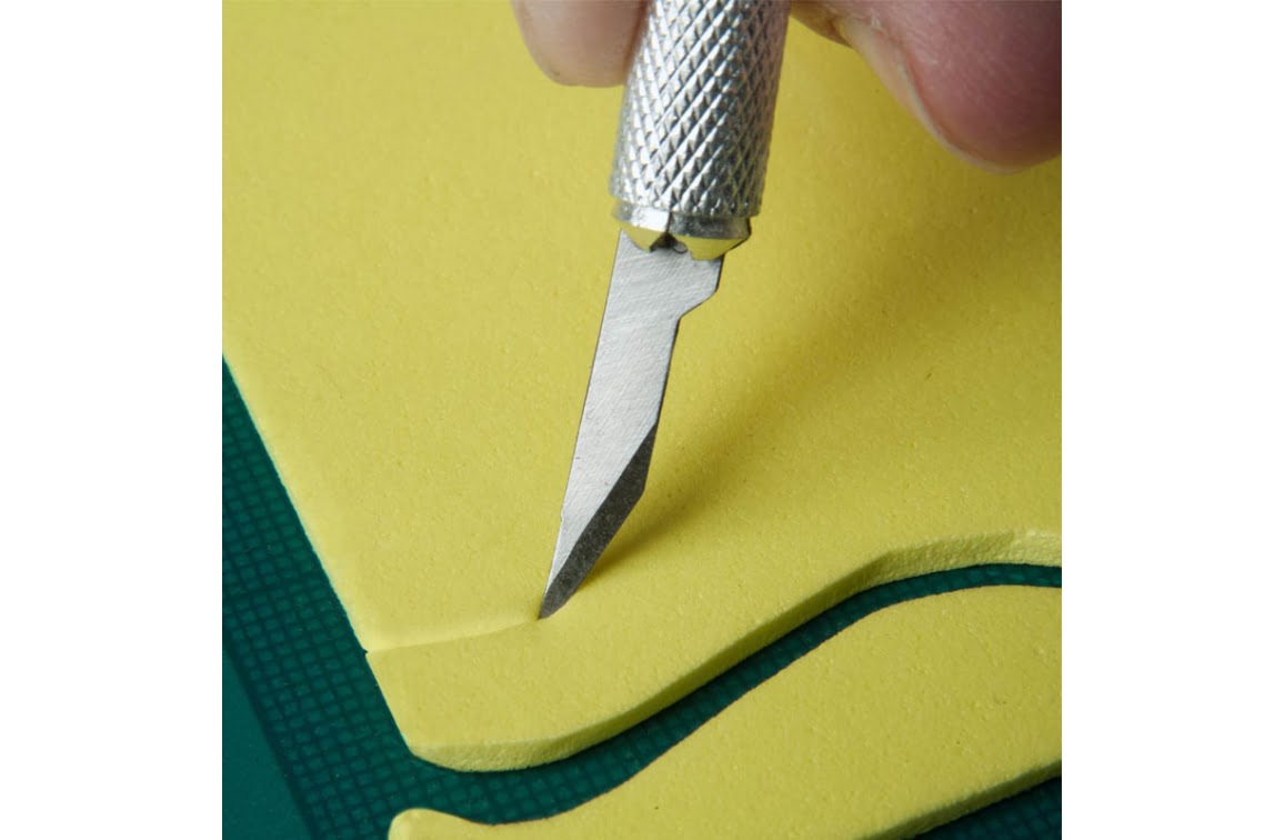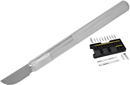 12 verschillende types stanleymesjes voor een uitgebreid gamma materialen en toepassingen, inclusief snijden met hoge precisie, ontbramen, inlegwerk, modelleren, sjabloneren en etsen.