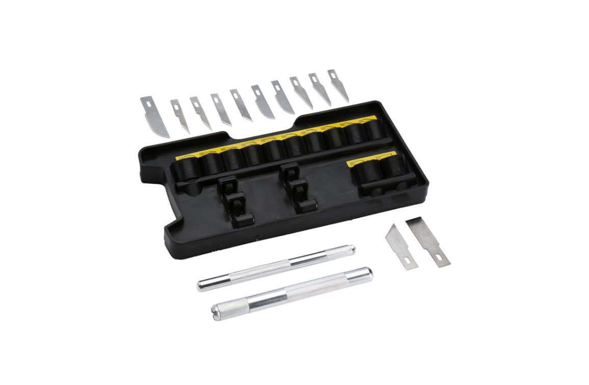 Stanley penmessen setTwee penmessen, één groot Stanley penmes en één klein Stanley penmes. Beide bedoeld voor precisie snijwerk.