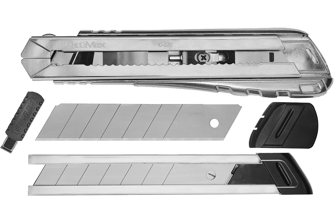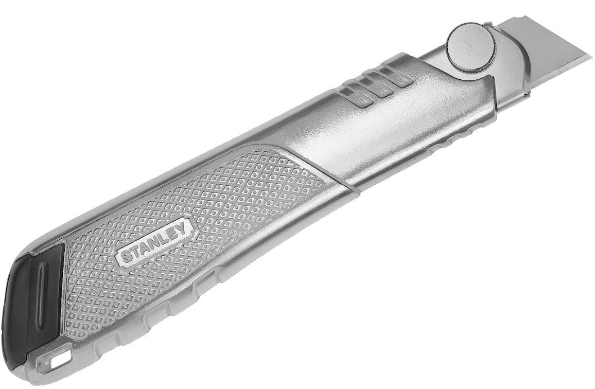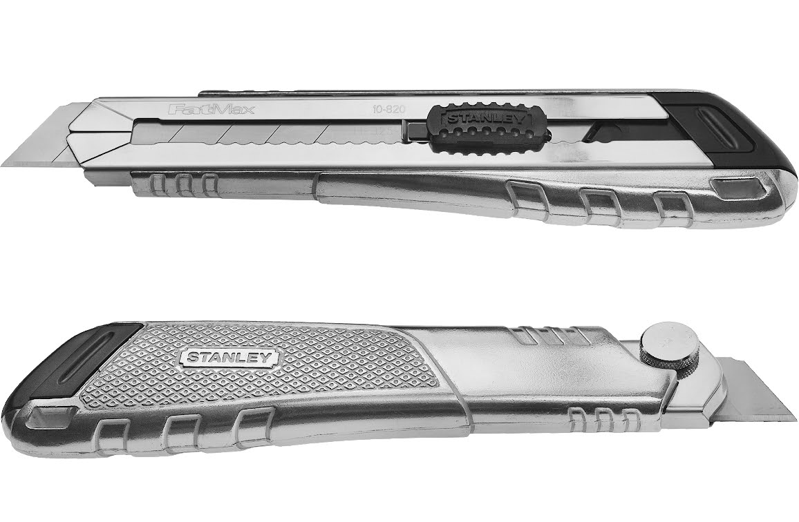 Stanley Fatmax 25mm afbreekmesDit zeer degelijke Stanleymes met een 25mm afbreekmes is uitgevoerd in massief roestvrij staal.
